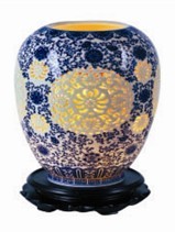 传世的青花瓷,西域的晶盐矿,不期而遇的精彩。清新雅致的中式古典青花瓷,是经特殊镂雕技术,釉烧而成的半透明亮孔,釉彩晶莹柔润,瓷薄而亮透,辅以纯净透亮的晶盐矿,创造出温馨的自然光,如梦如画,如痴如醉——是同样久远的历史同样深邃的文化不期而遇的精彩。