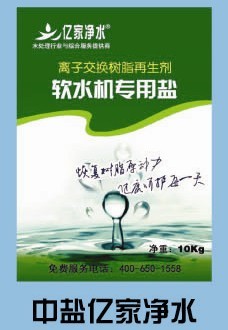 中盐国本公司充分发挥生产技术上的优势,在欧洲技术的基础上全面升级,通过反复研究,精心打造,推出中盐牌“软水机专用再生剂”,同时通过国家轻工业部海湖盐检测中心检测。“中盐”品牌作为国内软水盐第一品牌,已成为国内外多家知名软水机指定用盐产品,如:上海开能,亿家净水,金点净水,康丽根,美的,九如,艾尼克斯等等。